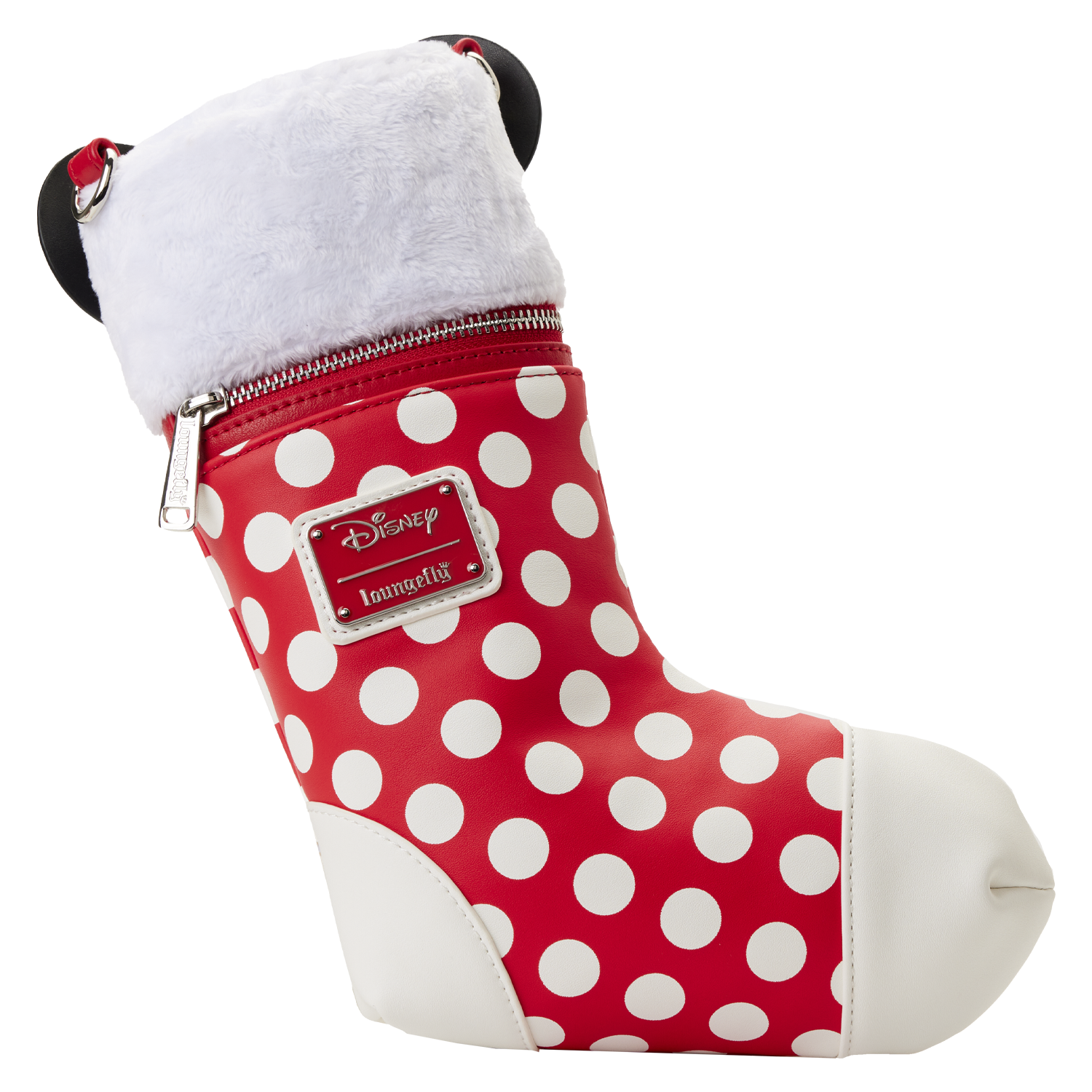 Zip off to your favorite holiday shops for stocking stuffers in style! This Loungefly Disney Minnie Mouse Cosplay Stocking Crossbody Bag is just the thing to put you in the holiday spirit. This figural bag takes on the entire shape of a holiday stocking, but all done up in Minnie Mouse polka-dot style. A red background forms a base for brilliant white polka dots—and the details continue on all sides of this bag—front to back to side. Just under the cuff of the stocking, you’ll find the zipper top, which opens up to reveal plenty of room for all the day’s necessities. Also, at the top, you’ll find Minnie Mouse’s signature ears and bow—coming to life in applique detail. A sprig of holiday decorates the center of the bow. It’s the perfect accessory for any holiday-themed Disney trip—or for turning everyday outings into merry, bright, and magical adventures.